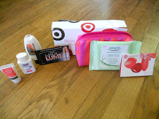 I love getting free things, packages in the mail, a suprises. Enclosed in this box was all three! Much to my pleasure I recieved this package from target (via their facebook giveaway) in the mail. What a cute bag and gifts for free! I'm excited to use all the products and maybe fall in love with a few too! I love to share my opinion on products so if one, or all, stand out Ill be sure to review it here. Next time there is a giveaway of this sort I will try and share it on my blog. =]